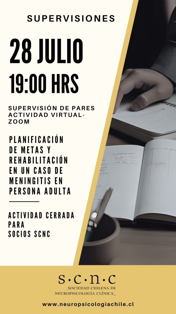 Dirigida: Esta supervisión es cerrada para socios de la SCNC que tienen sus cuotas al día y alumnos/ex alumnos de la estadía de perfeccionamiento en neuropsicología udp.